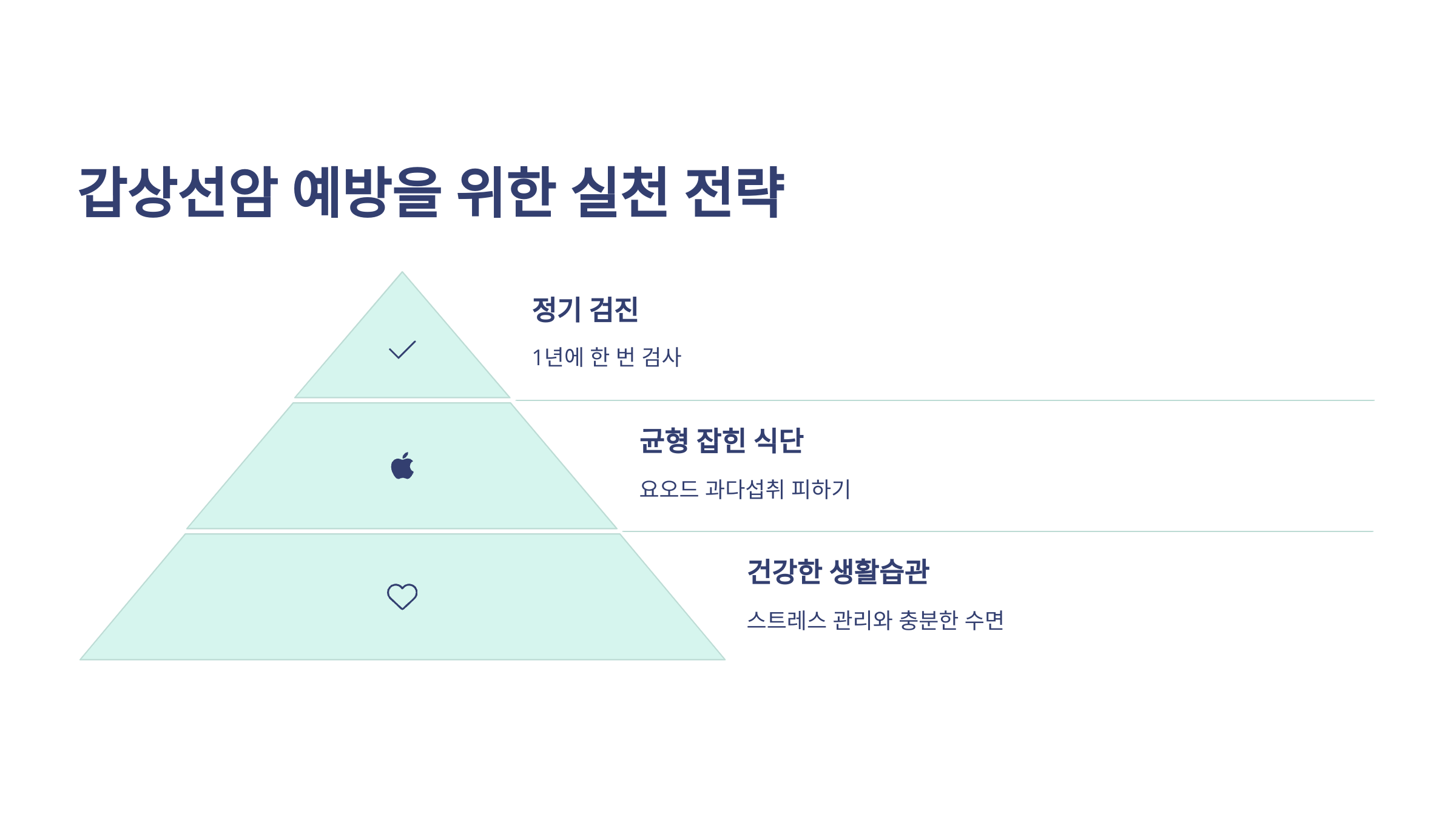 조기 발견이 곧 생존율입니다. 가족력이 있다면 20대 후반부터 1년에 한 번 초음파 검사를 추천드립니다. 특히 경부 초음파는 갑상선 결절을 조기에 발견하는 데 매우 효과적이에요.