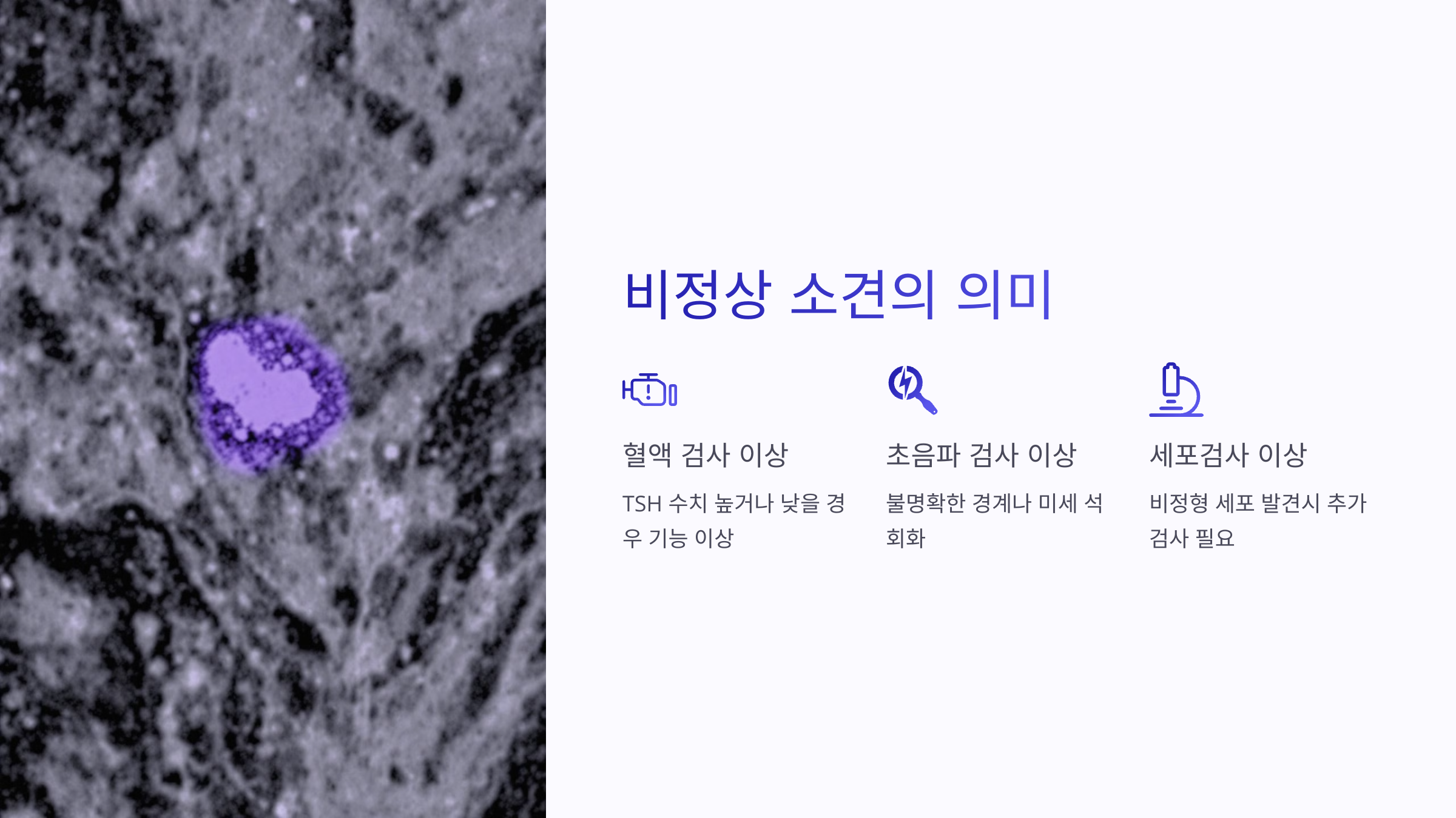- 미세침흡인세포검사 이상: 비정형 세포가 발견될 경우 추가 검사가 필요