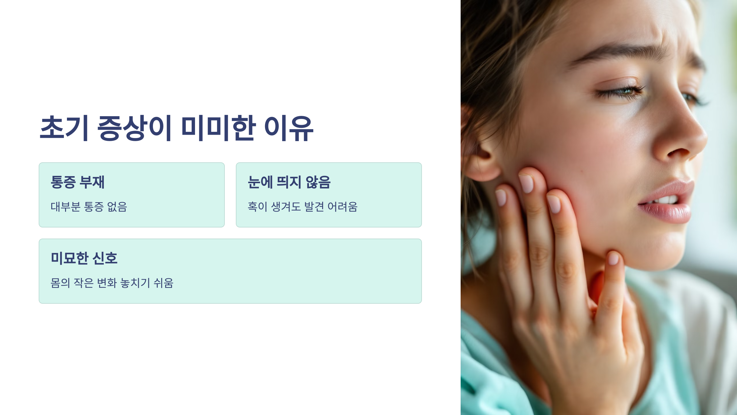 갑상선암의 초기 증상은 매우 약하게 나타나기 때문에 쉽게 지나칠 수 있습니다. 대부분 통증이 없으며, 혹이 생겨도 눈에 띄지 않는 경우가 많습니다. 따라서 몸에서 보내는 미묘한 신호들을 놓치지 않는 것이 중요합니다.