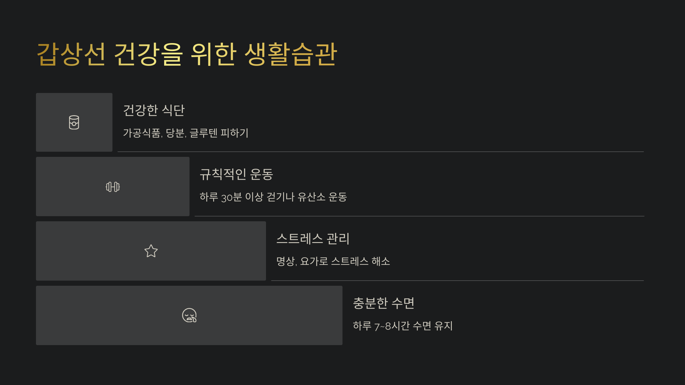 영양소 섭취뿐만 아니라 생활습관도 중요해요! 갑상선 건강을 유지하려면 꾸준한 운동, 스트레스 관리, 충분한 수면이 필수입니다.