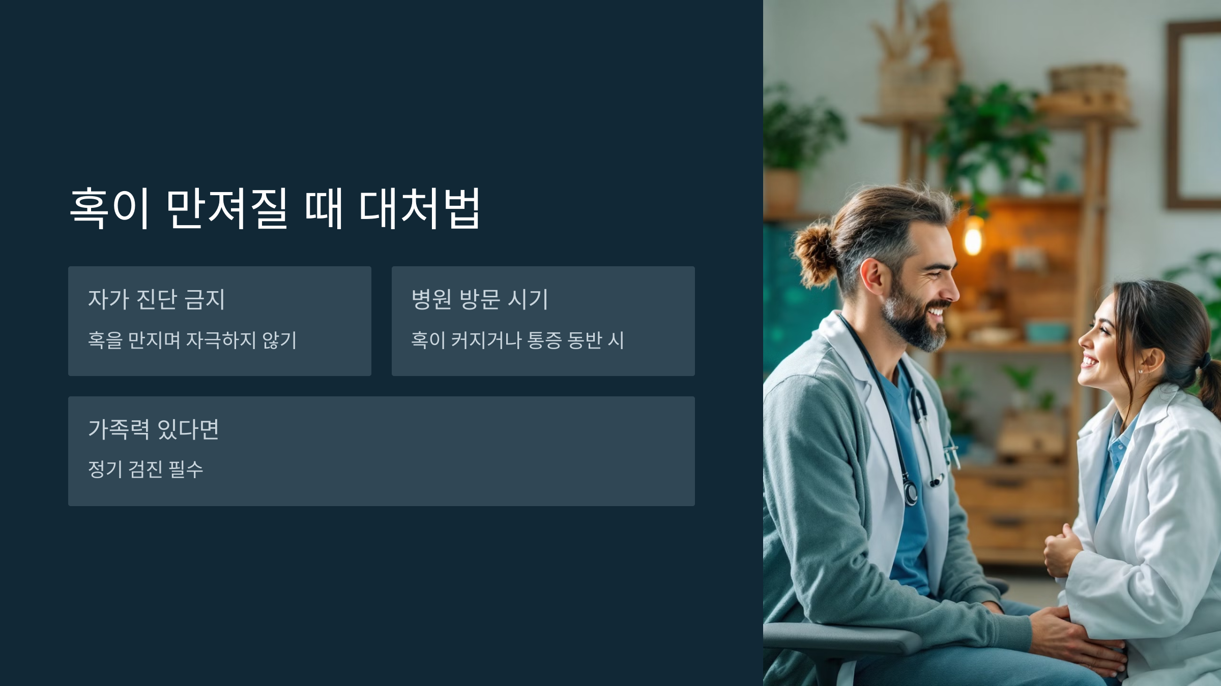 🔸 자가 진단 금지! 혹을 만지며 자극하지 않기