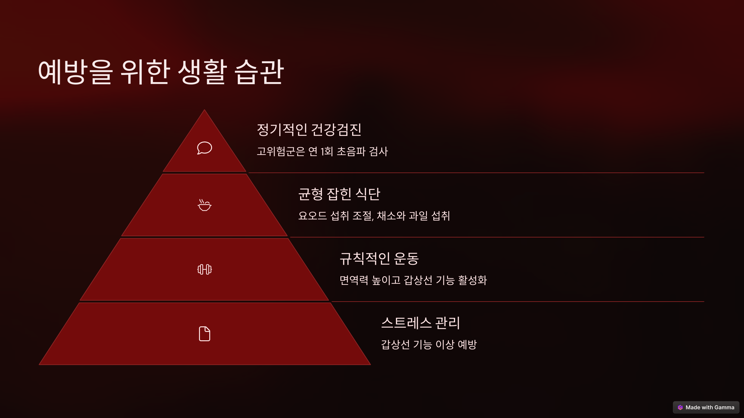 특히 목에 혹이 만져지거나 가족력이 있는 경우에는 정기 검사를 통해 조기 발견하는 것이 중요합니다.