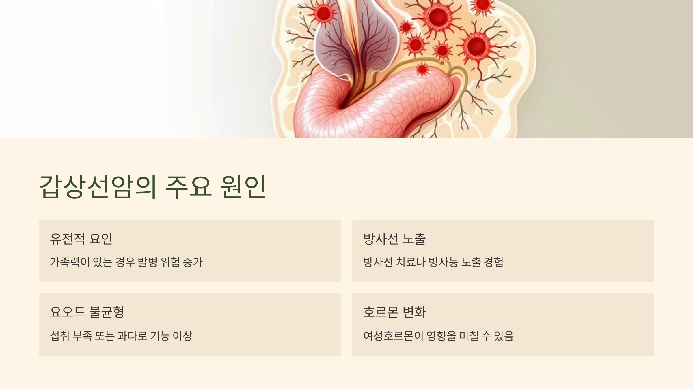 갑상선암은 비교적 예후가 좋은 암이지만, 발병률이 점점 증가하고 있어 관심이 필요한 질환입니다. 그럼, 갑상선암의 주요 원인은 무엇일까요?