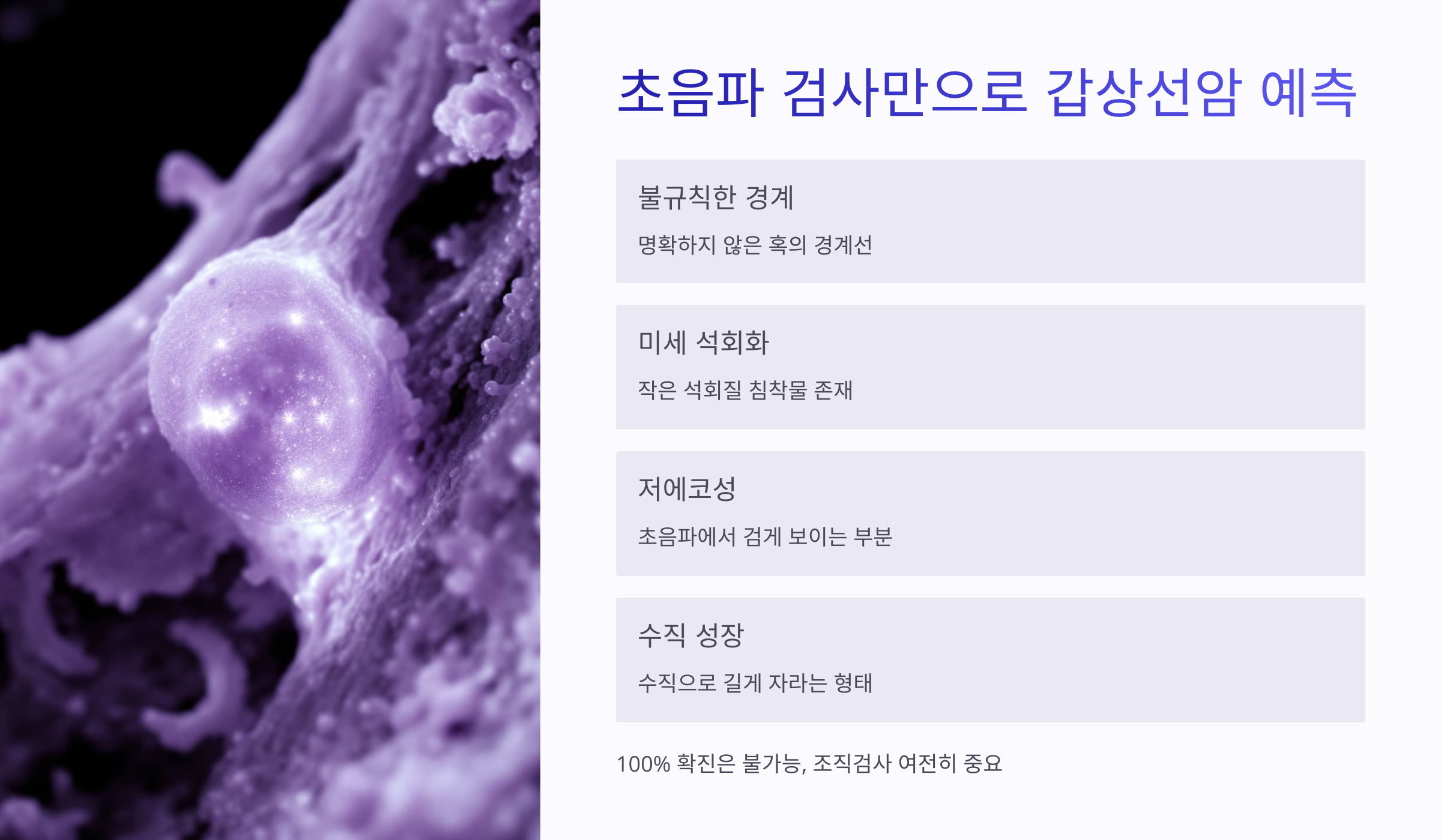 하지만 초음파 검사만으로 100% 확진할 수는 없기 때문에, 여전히 조직검사가 중요한 역할을 합니다.