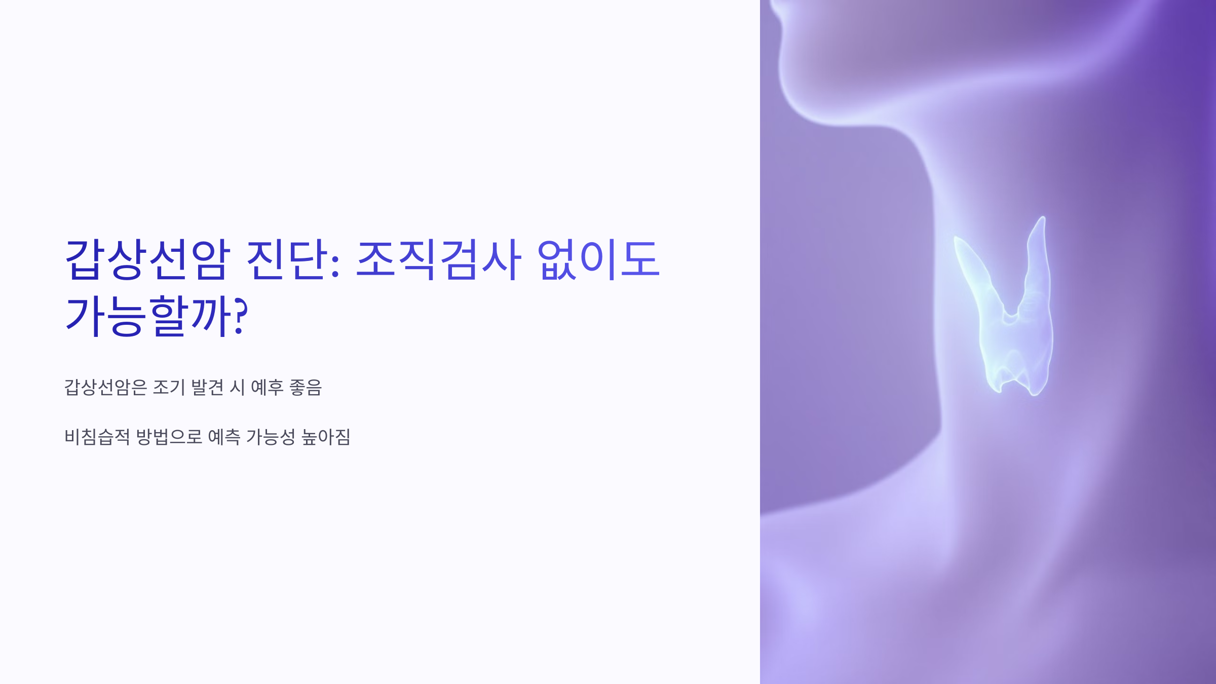 갑상선암은 비교적 흔한 암 중 하나지만, 조기 발견이 가능하면 예후가 좋은 편이에요. 그런데 꼭 조직검사를 해야만 진단할 수 있을까요? 요즘은 초음파 검사와 혈액 검사 등 비침습적인 방법이 발전하면서, 조직검사 없이도 어느 정도 갑상선암을 예측할 수 있다고 해요.